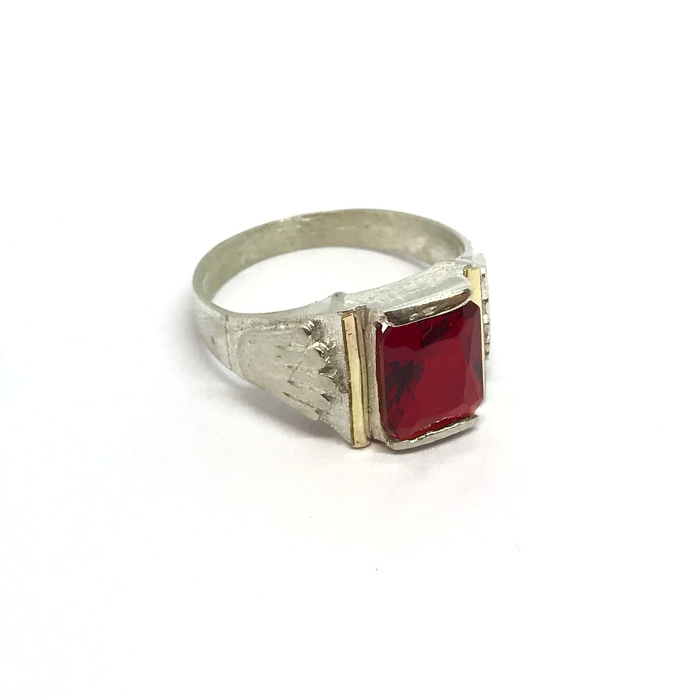Anillo sello de hombre con cubic rectangular y corona a los costados