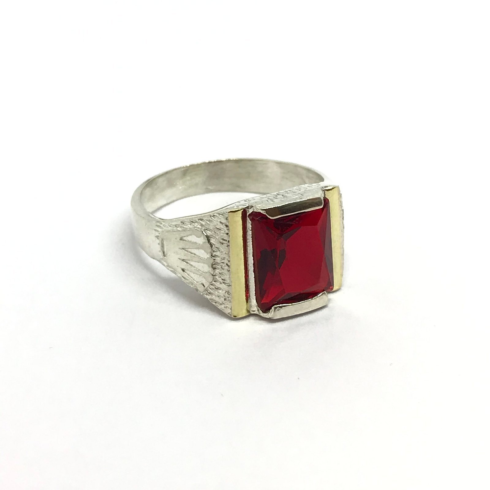Anillo sello de hombre con cubic rectangular y coronas a los costados