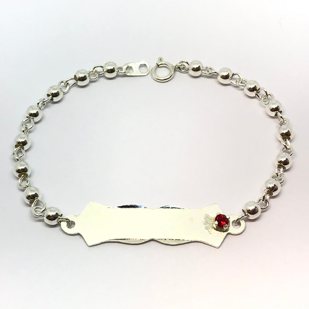Pulsera de identidad de sama con bolitas y piedra roja o rosa