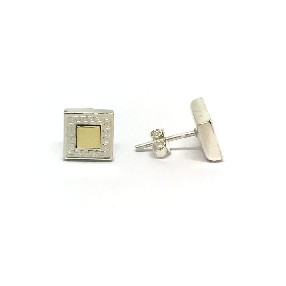 Aros cuadrados de 8mm centro oro con guarda griega