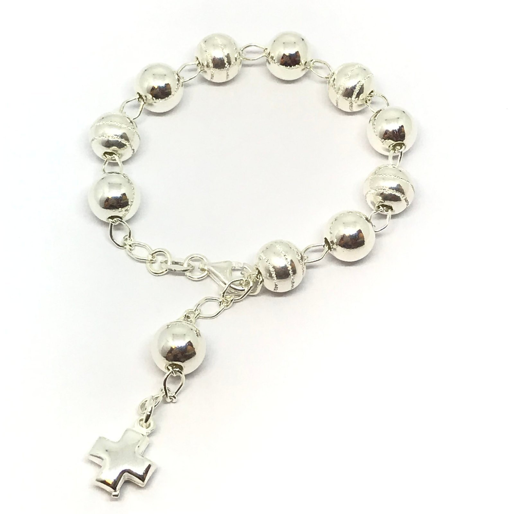 Pulsera denario con bolas combinadas de 8mm y cruz inflada