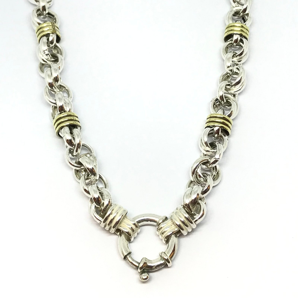 Cadena hueca doble rolo combinada de 50cm con aplique y cierre marinero