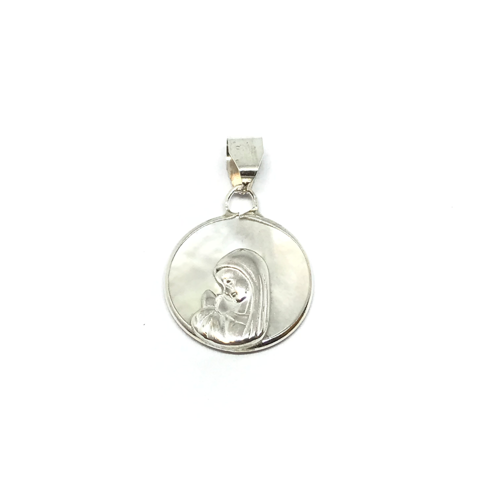 Dije de la virgen niña con fondo de nacar