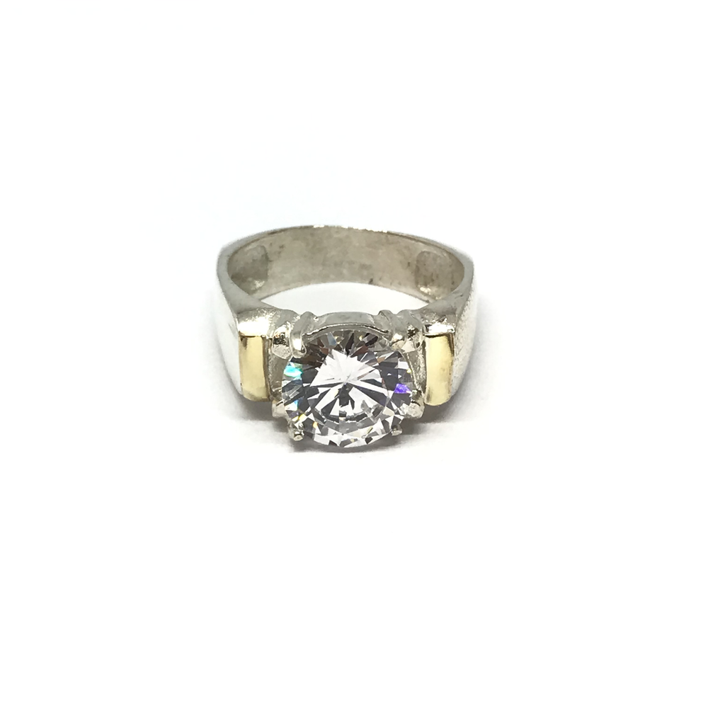 Anillo estilo solitario con aplique y cubic en colores varios