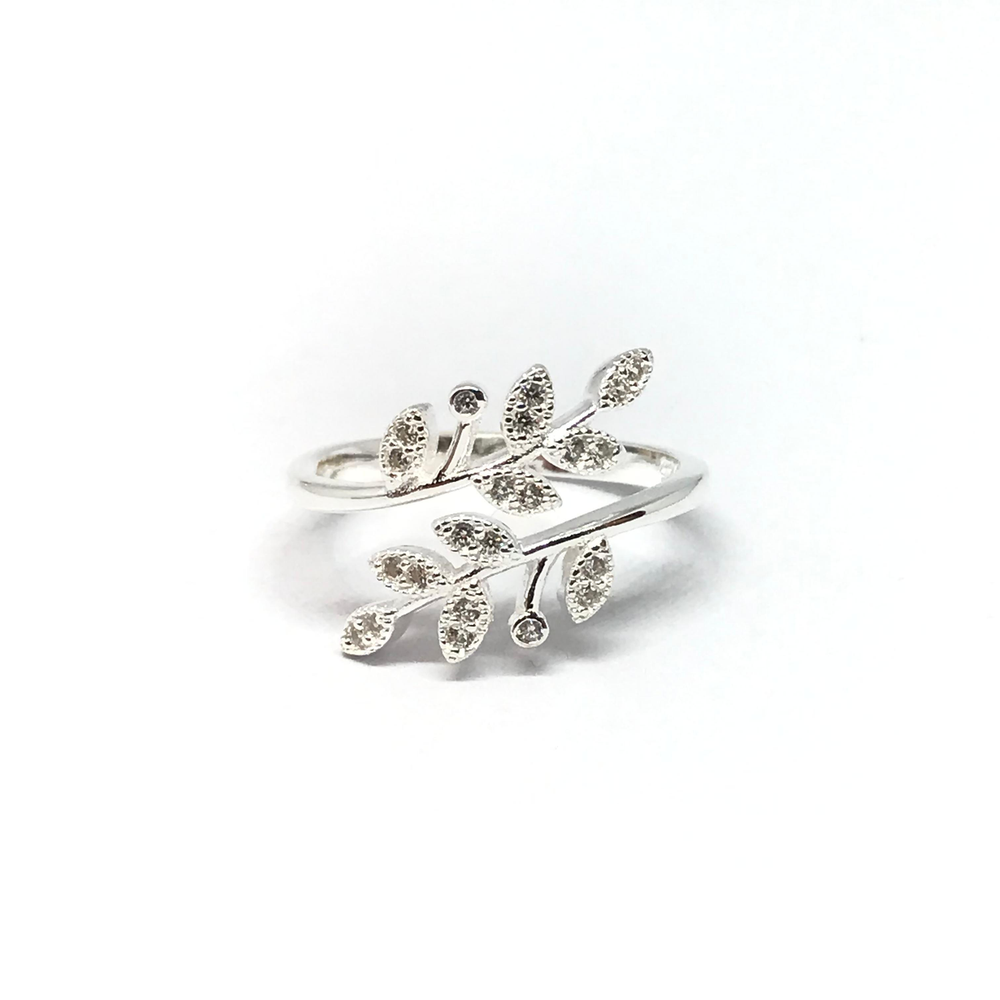 Anillo abierto de hojas con cubic nuevo7