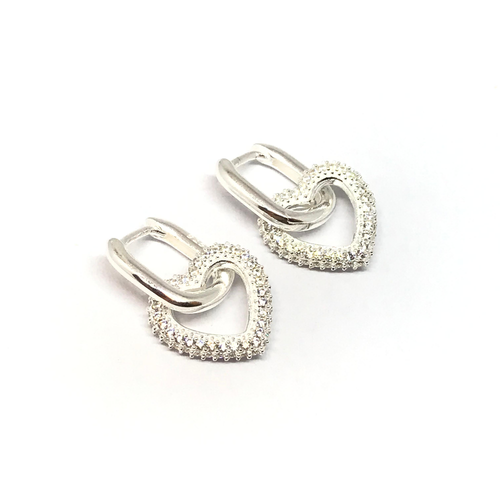 Aros argolla rectangular con corazon con cubic colgante nuevo7