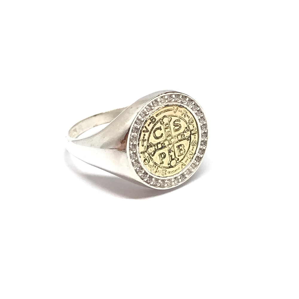 Anillo San Benito de 14mm con imagen en aplique y cubic nuevo21