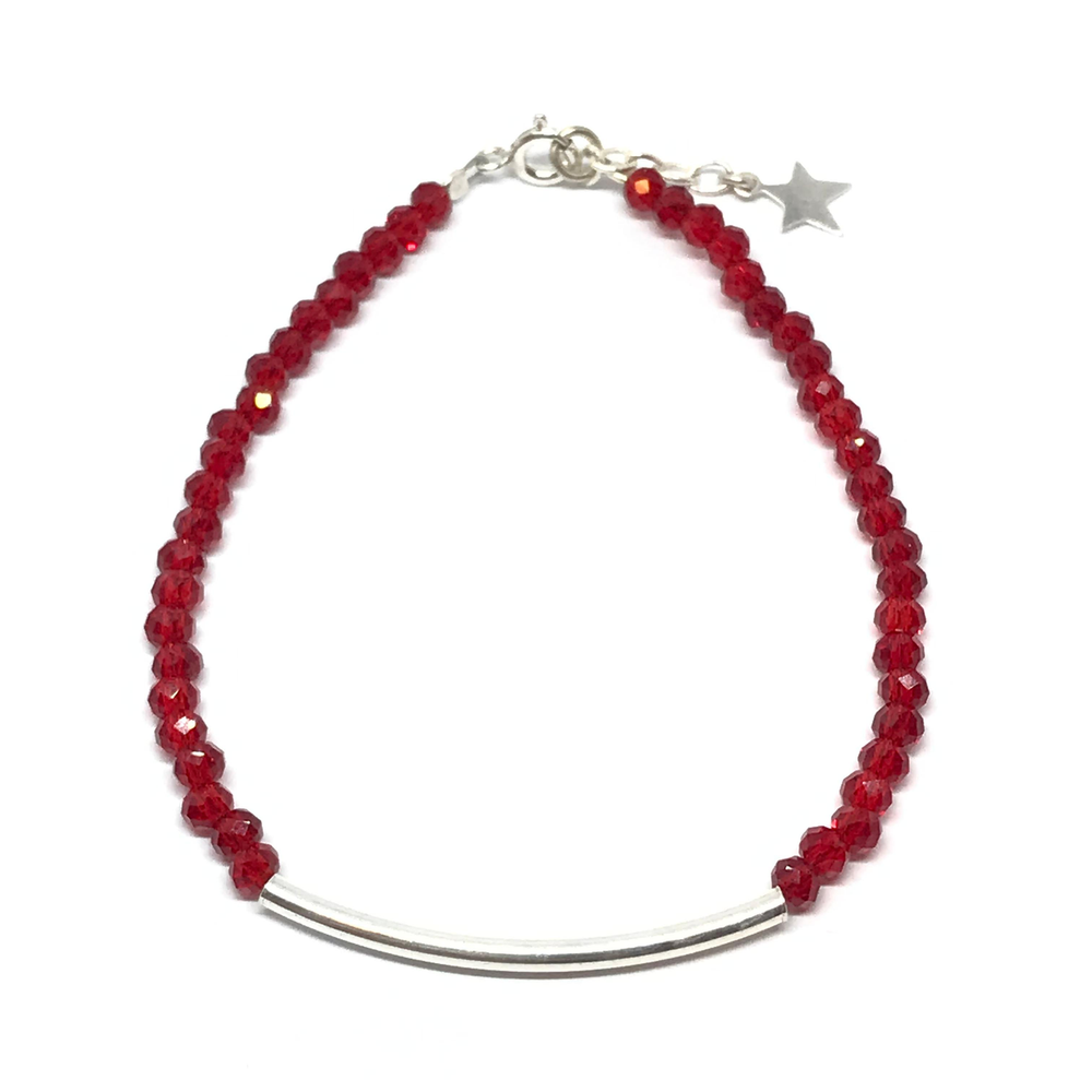 Pulsera de cristal con tubo de plata y colgante en cierre nuevo21