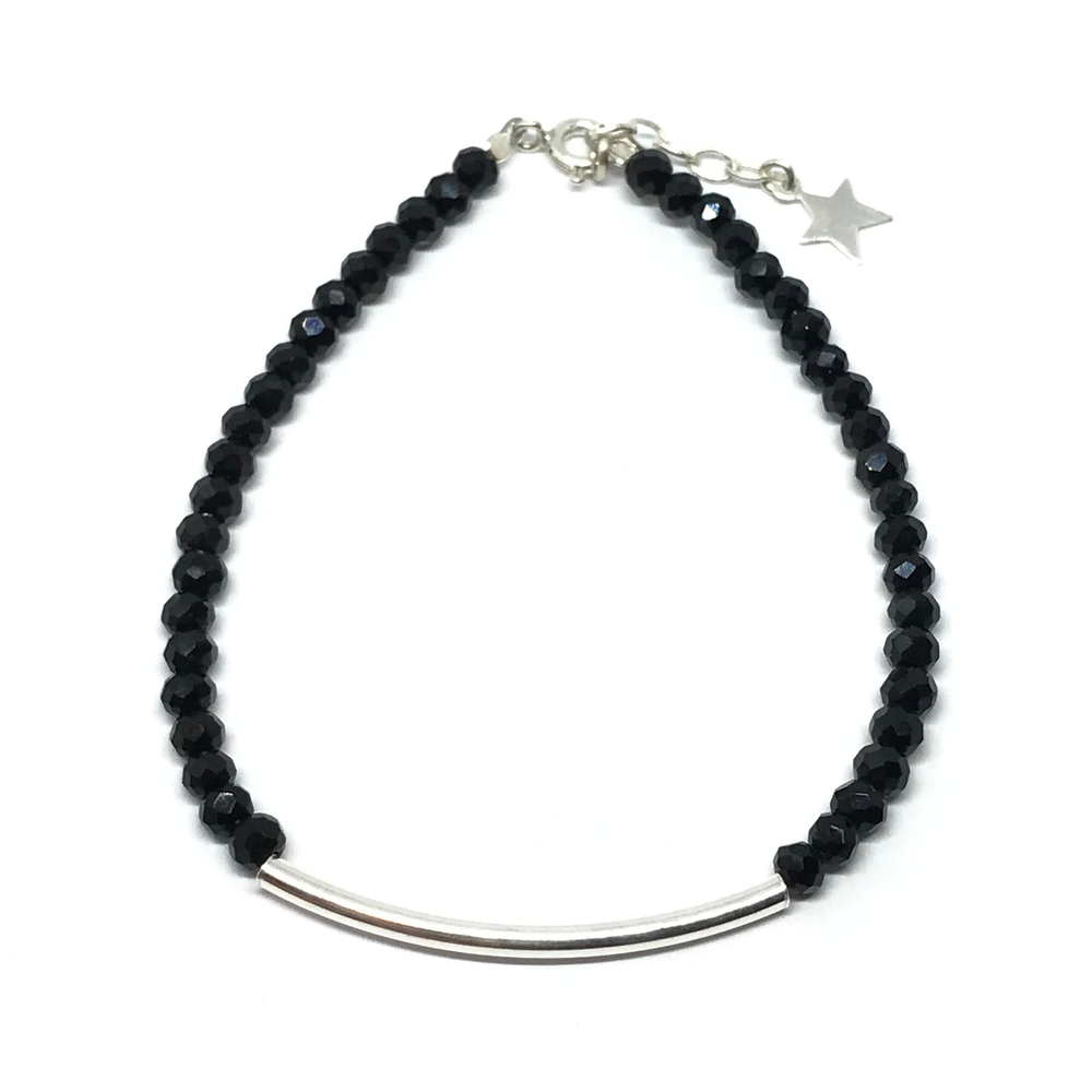 Pulsera de cristal con tubo de plata y colgante en cierre nuevo21