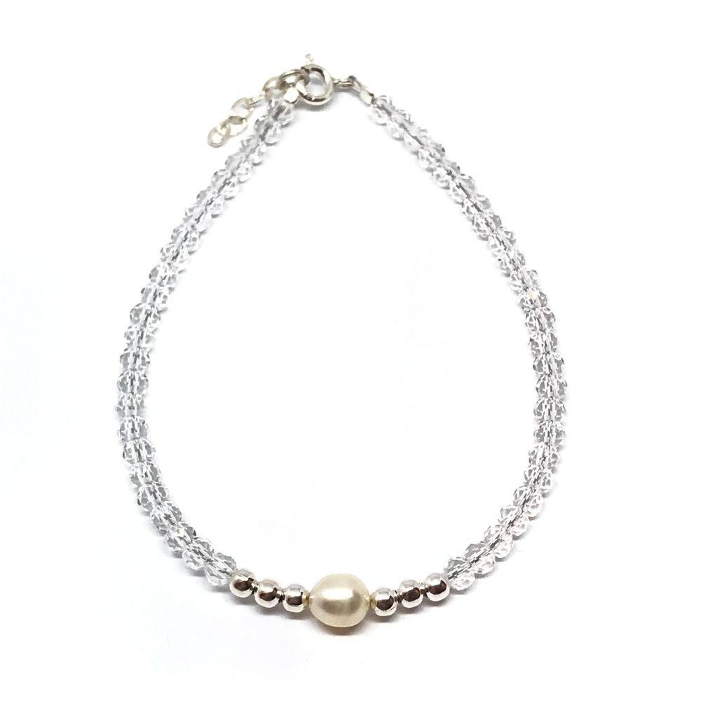 Pulsera de cristal con perla y bolitas de plata nuevo21