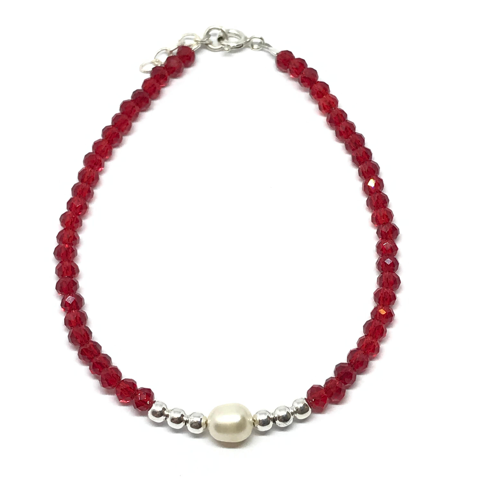 Pulsera de cristal con perla y bolitas de plata nuevo21