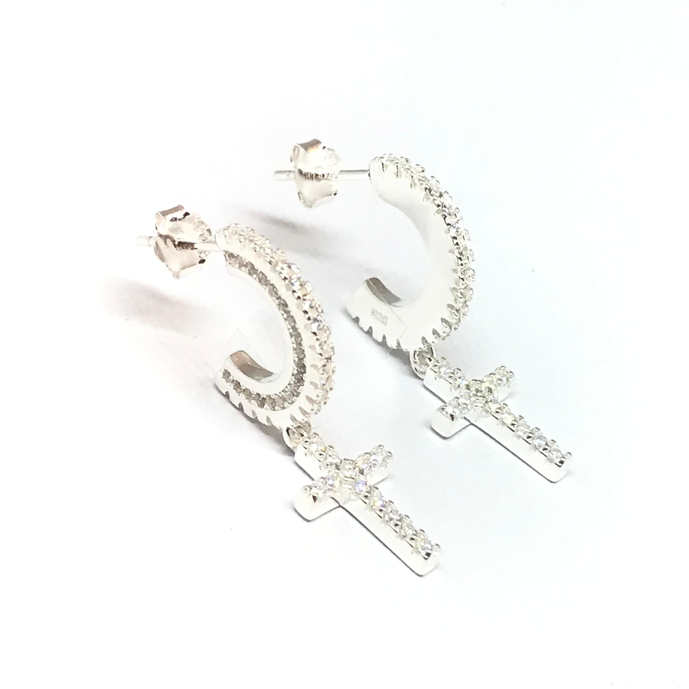 Aros doble media argolla con cubic y cruz con cubic colgante nuevo21