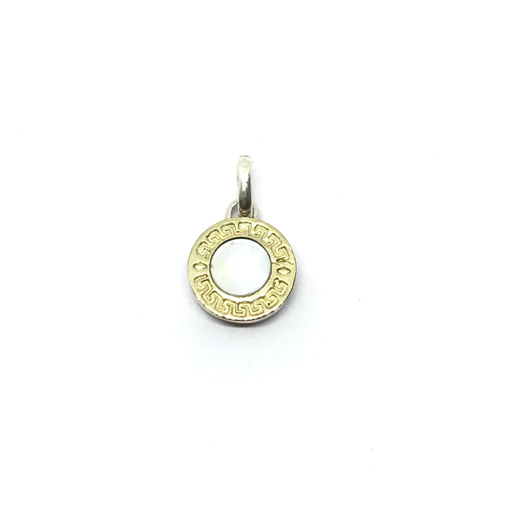 Dije redondo centro nacar y borde guarda griega con aplique nuevo26