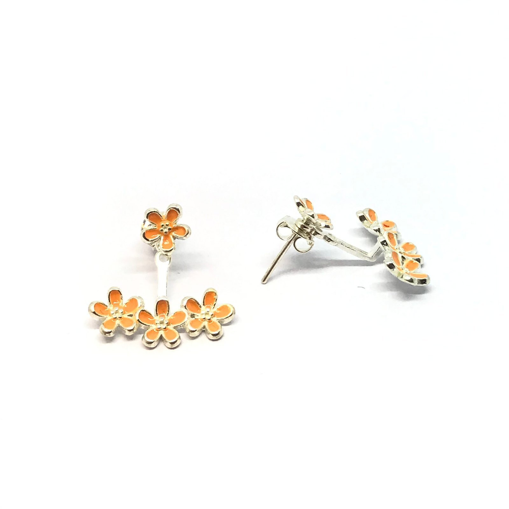 Aros abanico con flor esmaltada
