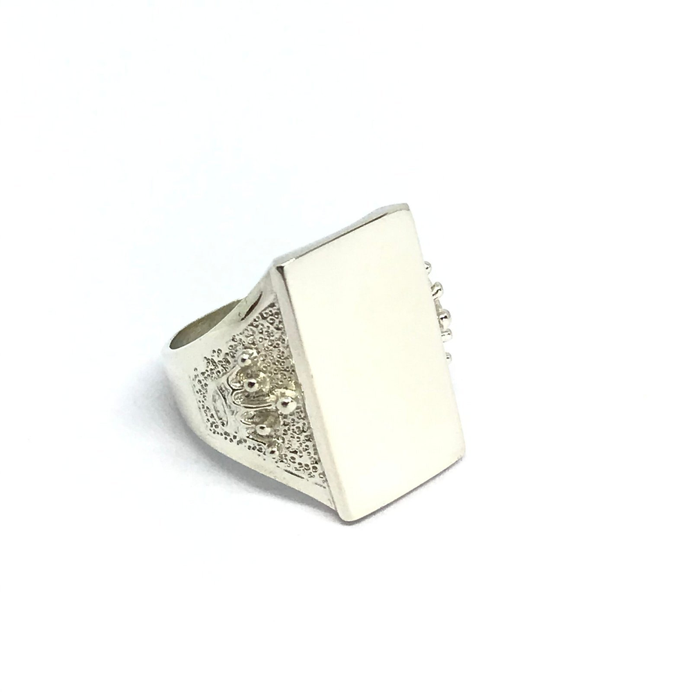 Anillo sello rectangular con coronas a los costados